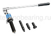 Поскольку он создаёт мощнейшее давление, которое гарантирует максимальную силу на нажимном штоке съёмника, то можно оперативно и беспроблемно снять максимально сильно прессованные либо прикипевшие подшипники. Во время снятия не будет рывков и нагрузок, что устраняет возможность порчи детали. В конструкцию входят: