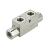 - Двухсторонние гидрозамки. В их корпусе установлены сразу 2 управляемых обратных клапана. Они способны перекрыть 2 линии. Двухсторонний вариант монтируют между распределителем и гидравлическим цилиндром.