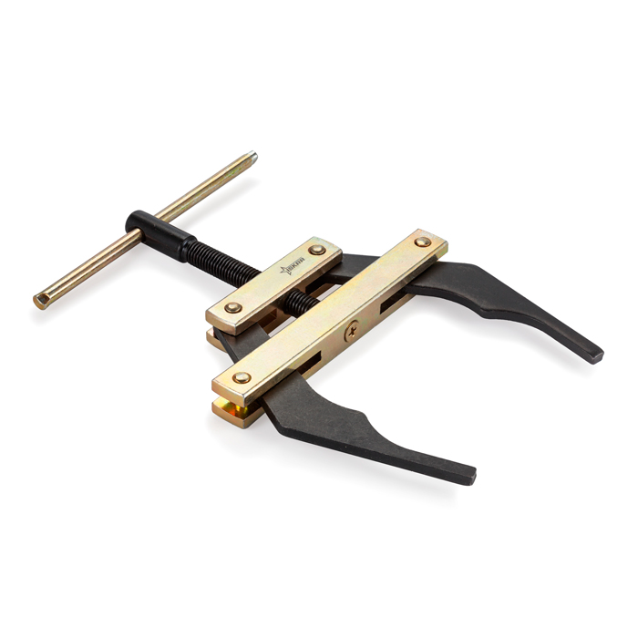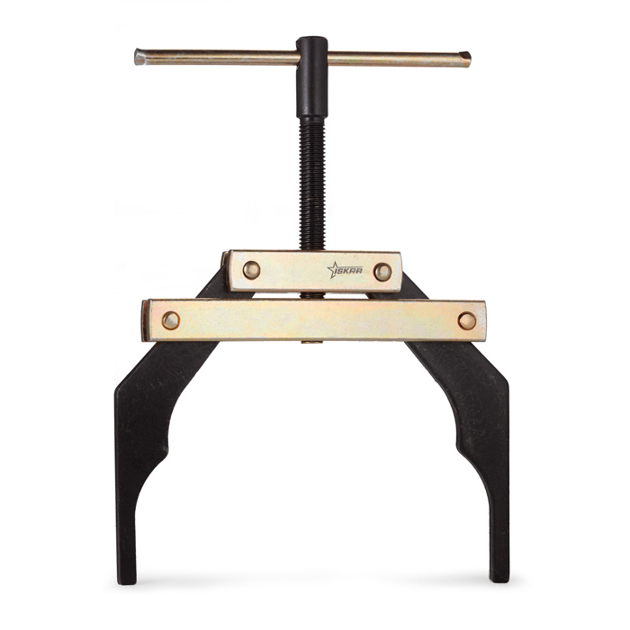Зажимы съемников разжимаются с помощью отпускания винта и зацепляются за открытые концы цепи. Винт затягивается так, чтобы два конца цепи были почти вместе. Центры втулок цепи должны находиться на расстоянии шага друг от друга. Затем соединительное звено без труда устанавливается на цепь.
