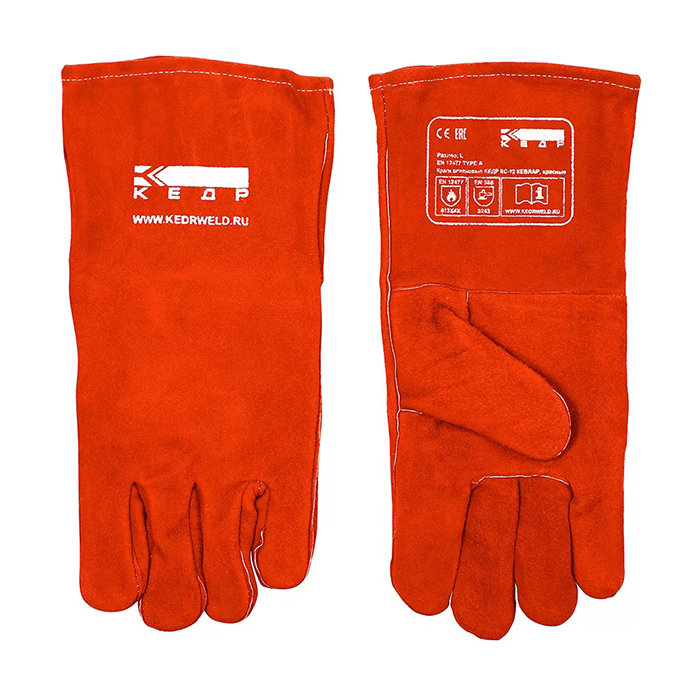 Краги спилковые КС-12 КЕВЛАР, красные КЕДР