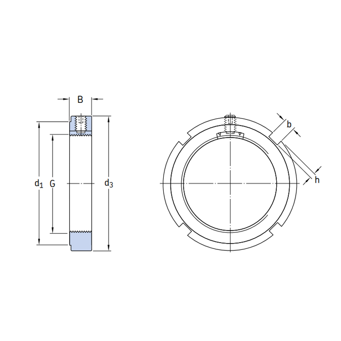Стопорная гайка KMK9 SKF – это гайка со встроенным запорным устройством, которая используется для установки подшипников на вал. Встроенный установочный винт позволяет не использовать дополнительные фиксирующие устройства.