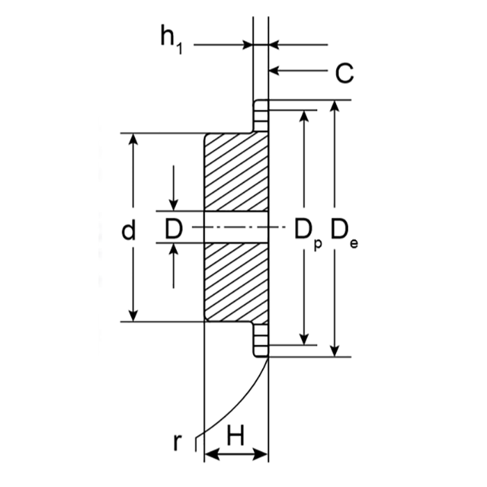 Радиус зуба звездочки r, мм19